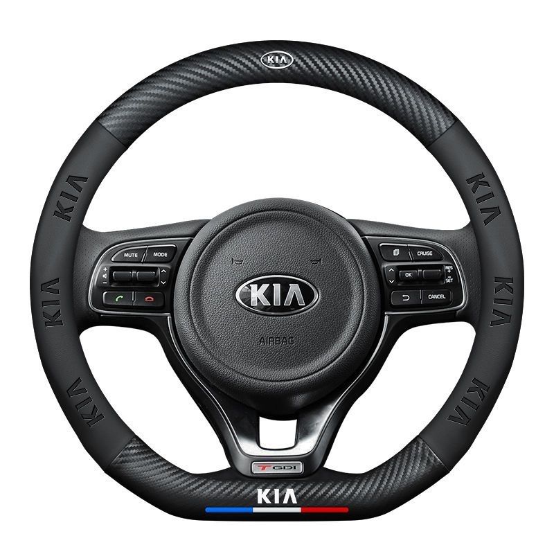 KIA Steering Wheel Cover – Fits 37.5–38.5 cm (14.76–15.16 in), Genuine Leather, Anti-Slip